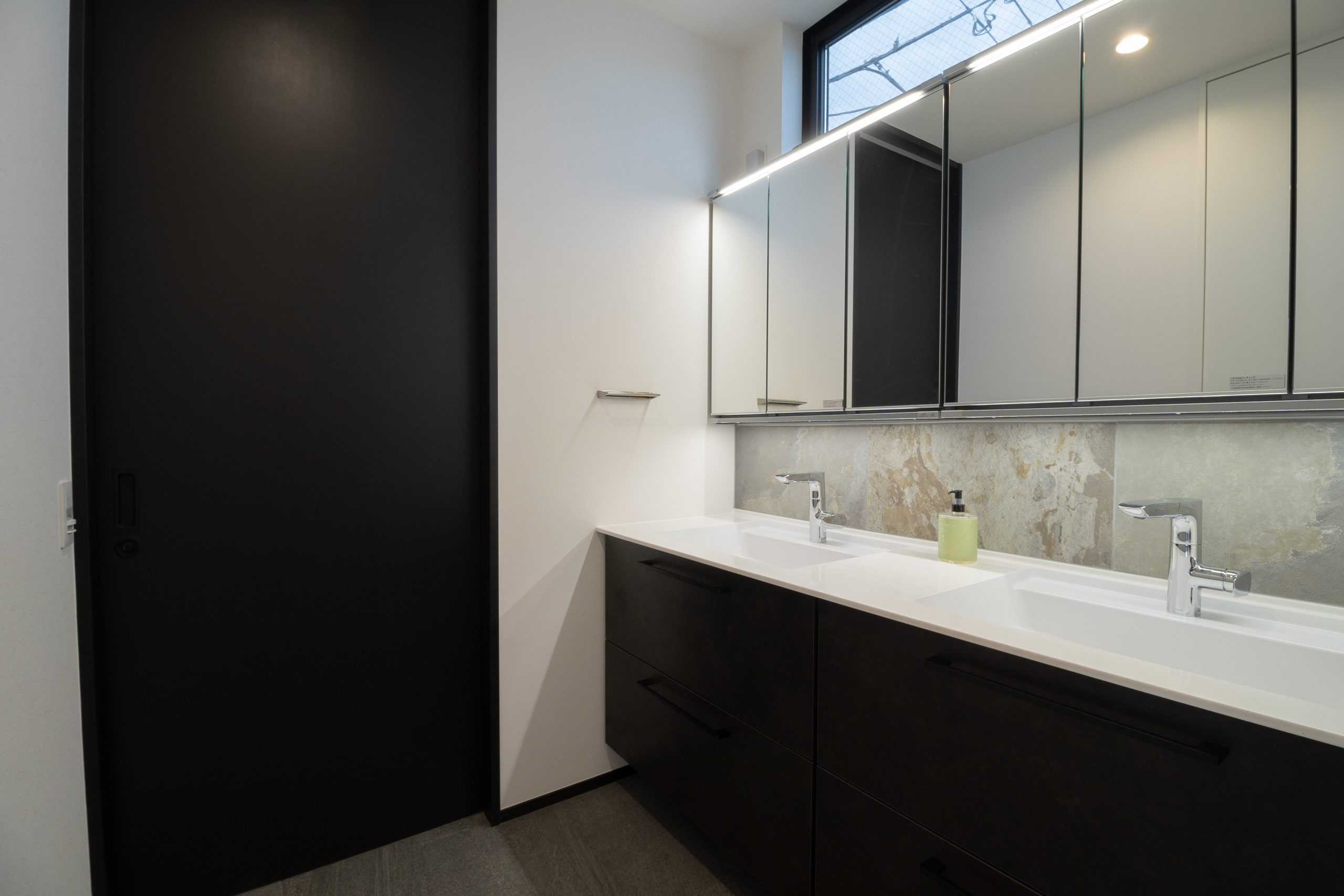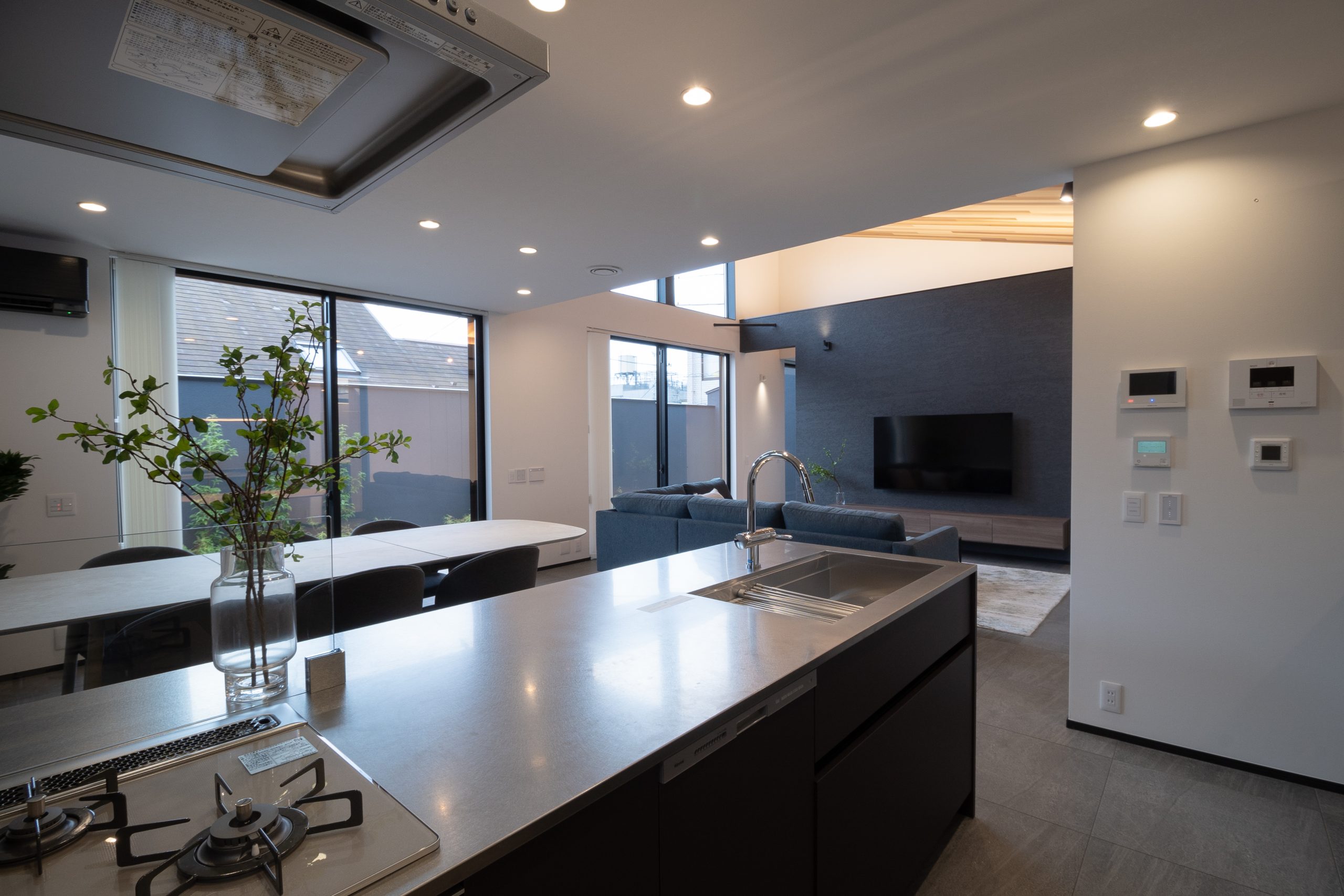 設備・仕様 | 現場発泡ウレタン断熱材 蓄熱式床暖房レガレット 自転車置き場屋内 宅配ボックス 洗面化粧台2ボウル 浴室ミストサウナ ガス乾燥機取付用ガス配管ダクト 太陽光発電パネル 蓄電池 各種照明器具付き 食洗器、浄水器 スマートホームIoTシステム 免震工法(スーパージオ) |